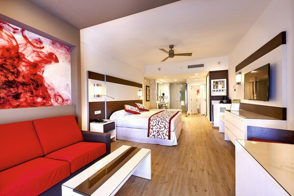 The Hotel Riu Palace Costa Mujeres, located on the Bahía de Mujeres beach, has spacious facilities, free WiFi throughout the hotel, and the best 24-hour all-inclusive service so that you can enjoy your holiday to the utmost. The extensive culinary offer, the fun entertainment program, and our exclusive RIU Hotels & Resorts service will make your stay unforgettable. This all-inclusive hotel in Costa Mujeres has 600 rooms with the finest amenities, like a minibar, beverage dispensers and a balcony or terrace. The facilities of the Hotel Riu Costa Mujeres also include five swimming pools, two of them with swim-up bars, so that you can enjoy a refreshing dip after relaxing in the lounge chairs in the solarium area. And if you want to feel the sand under your feet, there's a private area on the beach with hammocks and umbrellas.