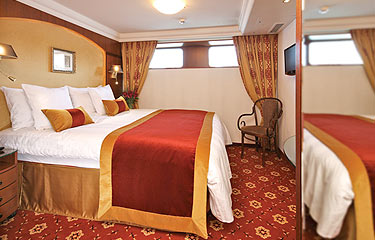 - Two 110-volt and two 220-volt outlets included in every cabin for small electronics; minibar stocked with complimentary water and soft drinks